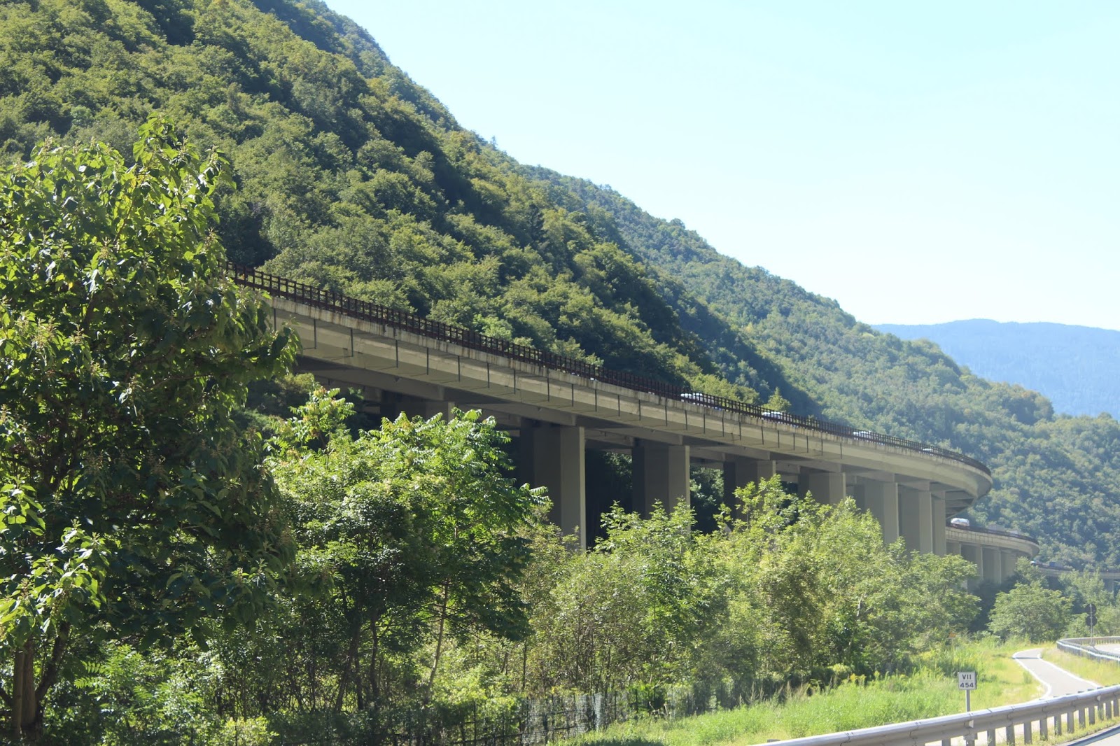 Tot Rapello hebben we het gehaalt, mooi binnendoor, maar daarna zijn we maar de autostrada op gegaan. Ons reisdoel is "in de buurt van de Monte Bianco", of voor de wereldburgers onder ons: De Witte Berg. We dachten aan de camping in La Salle, Morgex, net voorbij Aosta.